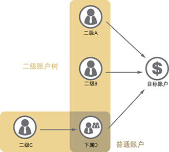 二级账户作为资金流转账户,被设定为零余额,即资金过账就被系统自动实时归集至目标账户,不发生资金停滞,从而大大提高现金流转速率。