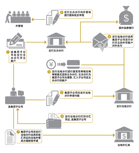 1、集团进口付汇业务流程图: