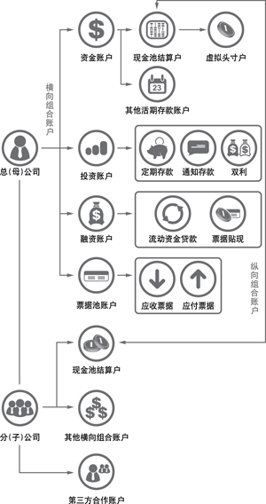 在纵向组合账户中,主账户一般是指集团总部在交行开立的某一活期结算账户,集团成员的活期账户作为现金池子账户,建立纵向关联关系。